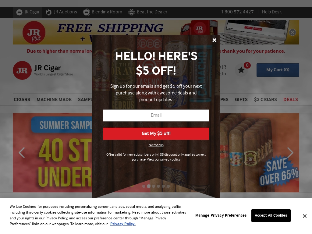 JR Cigars | The World's Largest Online Cigar Store JR Cigar is the leading cigar retailer in the game. The huge selection, affordable prices, guaranteed freshness, same-day shipping, fast cigar delivery, top-notch customer service, low shipping rates and super-fast website all make JR Cigar the premier and only spot to buy cigars online.